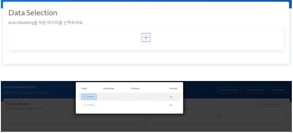 Data Selection에서 데이터 파일을 업로드 할 수 있습니다.