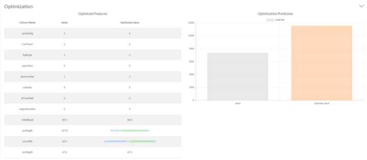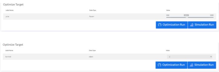 최적화는 예측 변수를 원하는 설정값으로 맞추기 위해서 변경 가능한 변수들을 조작할 수 있는 기능입니다.