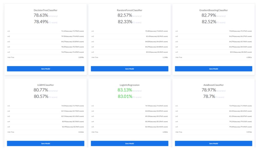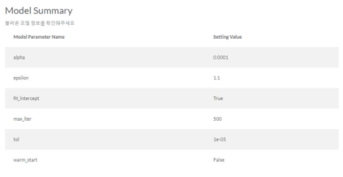 모델 선택이 완료되면 Model Summary에서 머신러닝 모델의 요약 정보를 확인할 수 있습니다.
