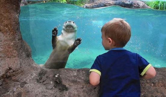 수달을 처음 본 로봇들은 "이 동물은 뭐야?"라고 묻습니다.