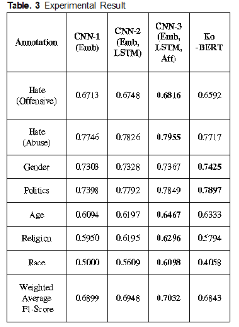 이원석, & 이현상. (2020). 딥러닝 기술을 활용한 차별 및 혐오 표현 탐지: 어텐션 기반 다중 채널 CNN 모델링. 한국정보통신학회논문지, 24(12), 1595-1603.