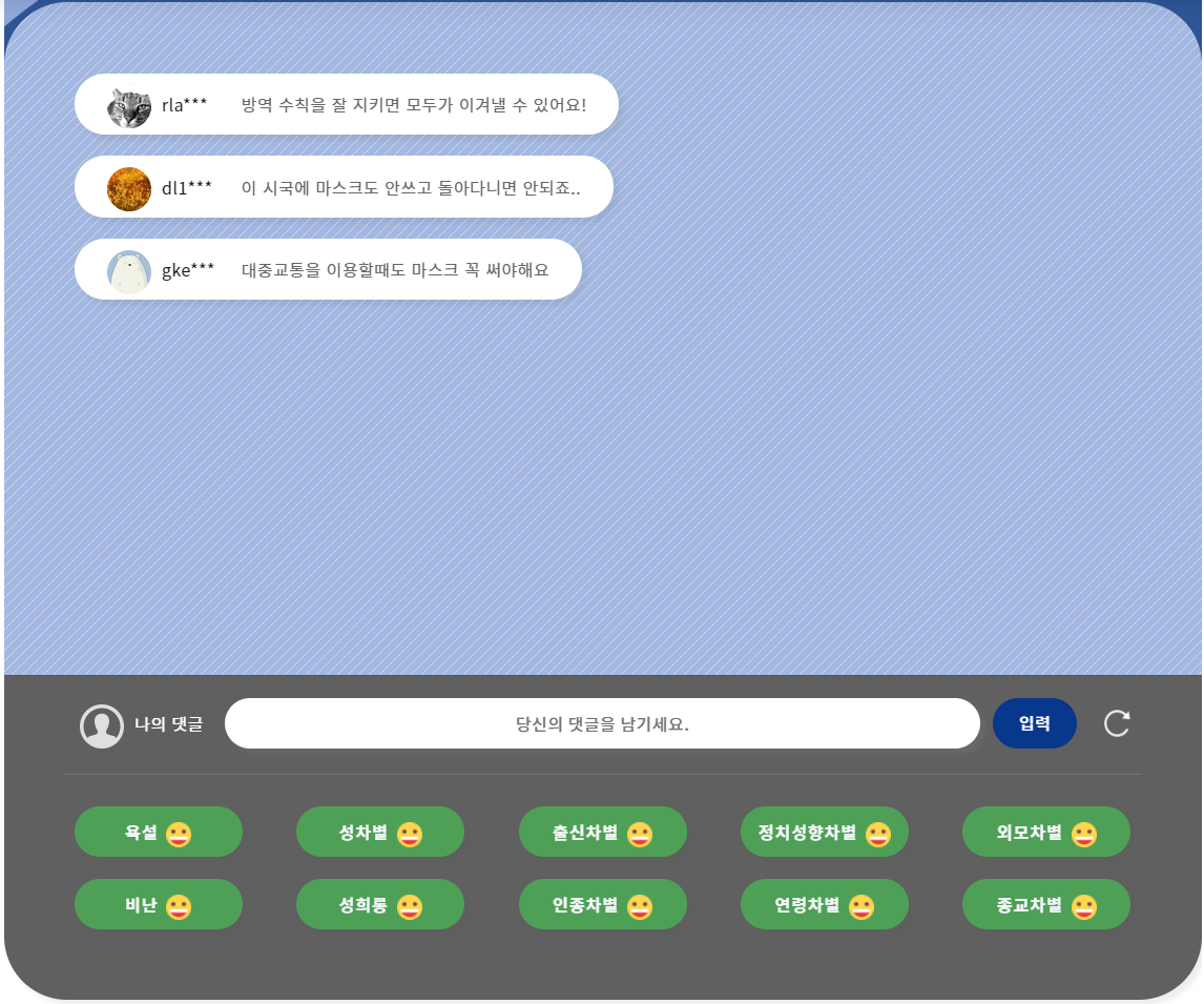 Know Comment API는 모두가 건전한 인터넷 문화를 향유할 수 있도록 어떠한 혐오 및 차별적인 발언도 놓치지 않고 탐지하는 것을 목표합니다.
