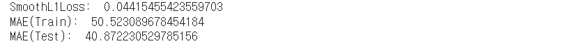 은닉층을 추가하지 않은 경우와 비교하였을 때, train 과 test 데이터의 MAE가 좀 더 안정적이게 감소 하는 것으로 보입니다.