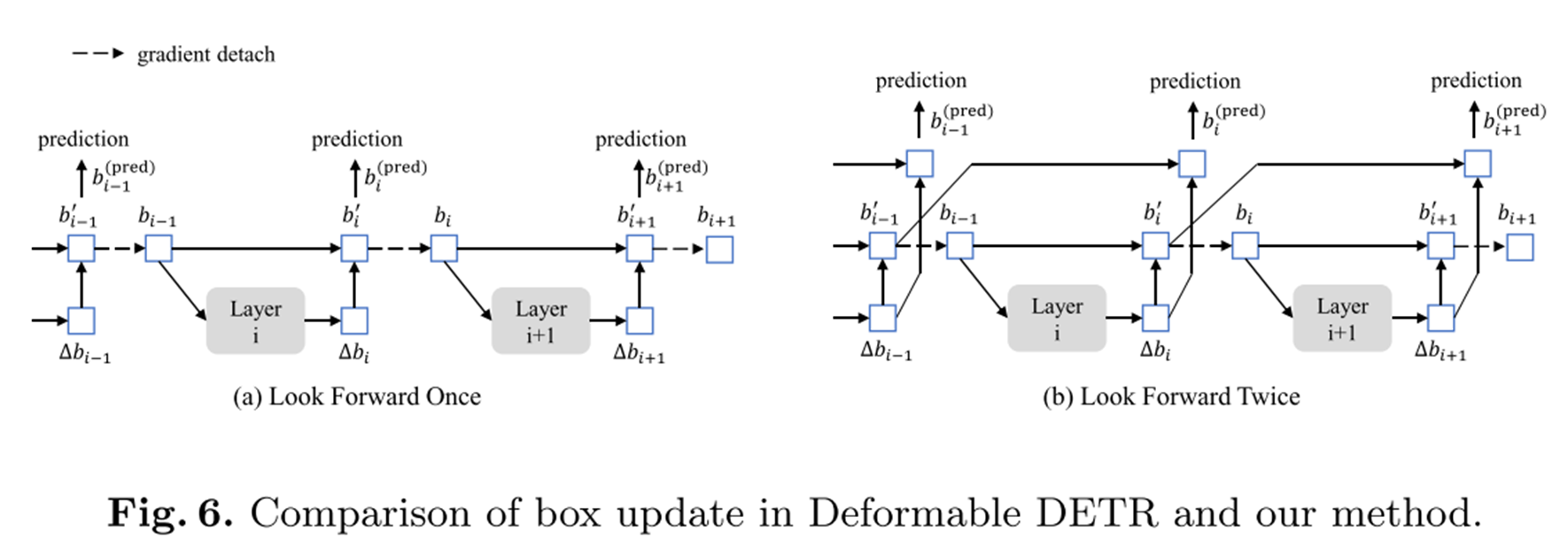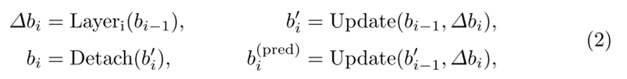 (a)의 경우 기존의 Look forward Once 기법으로 안정적인 학습을 위해서 레이어간 그래디언트 전파를 차단합니다.