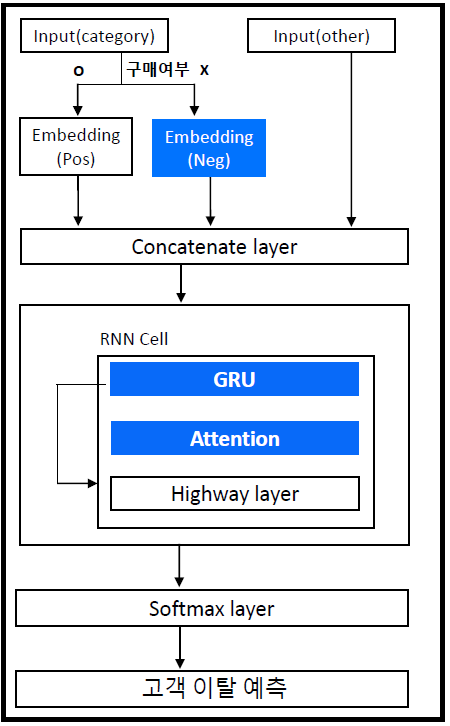 따라서 빅웨이브 팀은 고객 데이터를 시퀀스 데이터 형식으로 처리하여 RNN 기반 GRU(Gated Recurrent Unit) 기법을 활용했습니다.