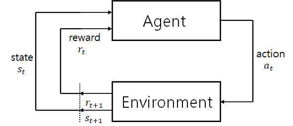 강화학습이란 어떤 환경(environment) 안에서 행동 주체인 에이전트(agent)가 현재 상태(state)를 가지고 보상(reward)를 최대화 할 수 있는 행동(action) 혹은 행동 순서를 최적화하는 기법입니다.