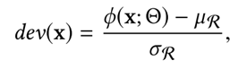 세 번째로, Deviation Loss입니다. ϕ (x), µR, σR은 최적화를 위해 편차 손실 함수 L에 입력합니다.