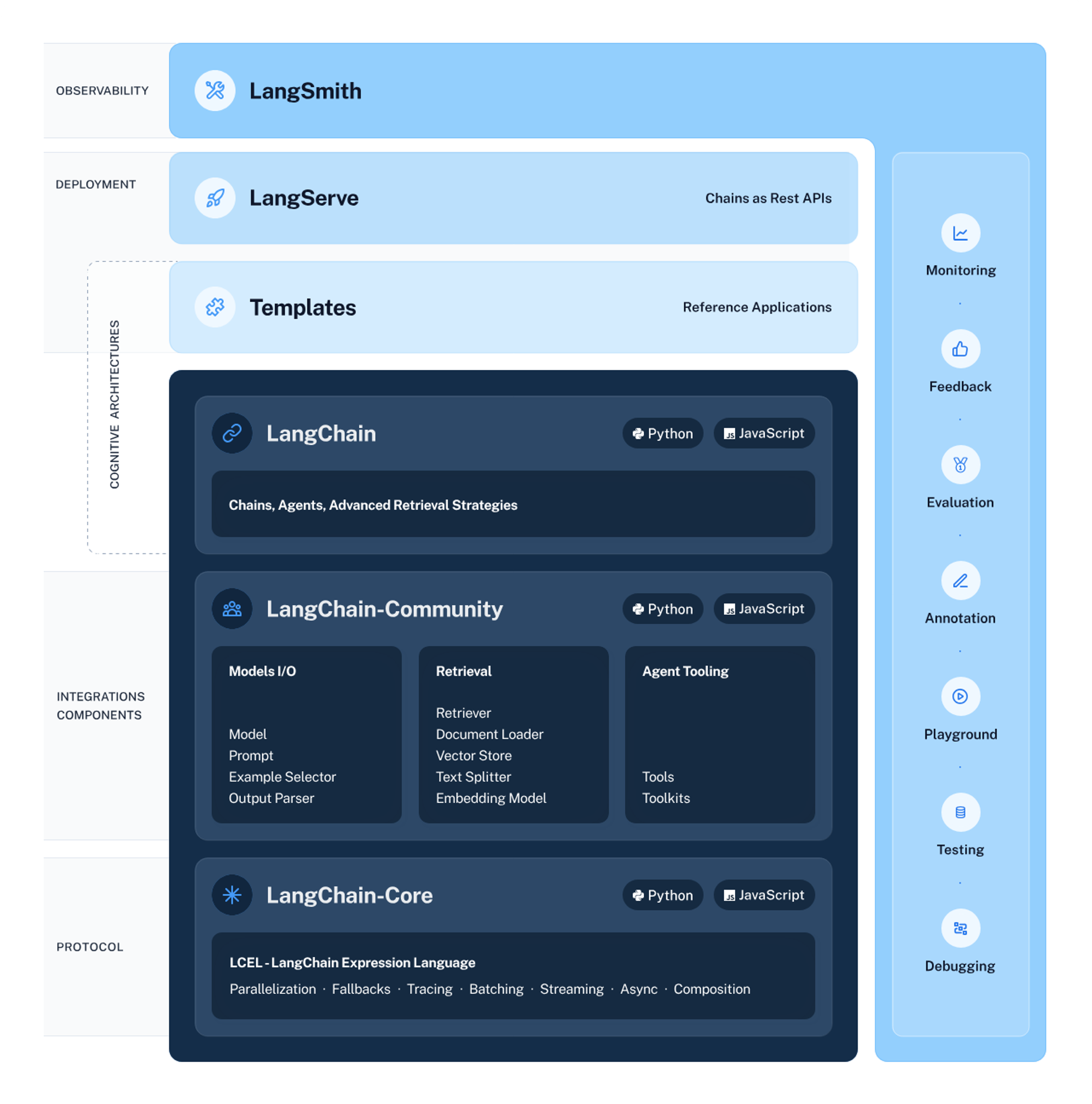 - LangSmith: LLM Chain을 디버깅, 테스트, 평가 및 모니터링할 수 있는 개발자 플랫폼