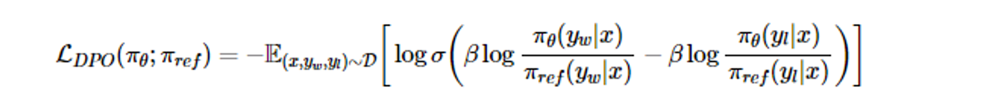 식을 보면 간단히 알 수 있는데 y_w을 positive 답변, y_l을 negative 답변이라 할 때