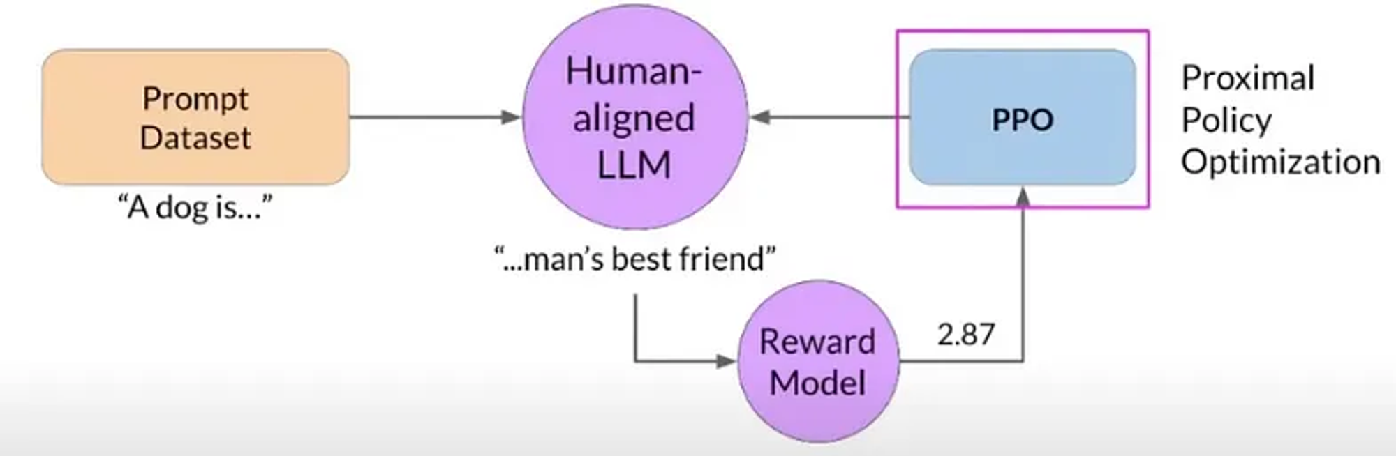 - 강화학습에 사용하는 알고리즘은 Proximal Policy Optimization 으로 보상 점수에 대한 로스를 계산하고 LLM 높은 Reward를 산출할 수 있도록 최적화를 수행
