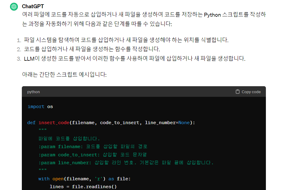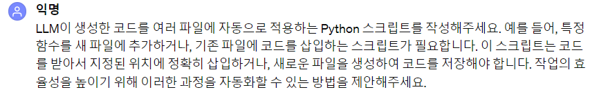 예를 들어, 파이썬 설정 스크립트 생성을 요청했을 때, 여러 파일을 수정하고 각 파일에 특정 변경을 적용해야 할 수 있습니다.