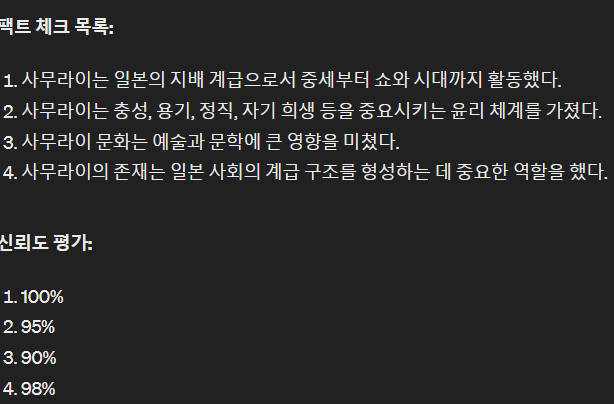 팩트 체크 목록을 요청하고, 목록에 대한 신뢰도를 평가하도록 프롬프트를 작성합니다.